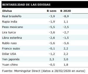 Los distintos bancos centrales valoran la posibilidad de implementar nuevos estímulos a sus respectivas economías como por ejemplo: Japón: inyecta liquidez al mercado con un préstamo de 500.000M de yenes en repos de JGB a empresas financieras; Italia: inyectará 3.600M€ para mitigar el impacto del COVID-19, en formato de créditos fiscales a compañías que hayan reducido sus ventas un -25%.