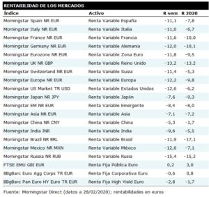 El mercado por fin corrige, el Coronavirus o COVID-19 ha llegado a los mercados bursátiles. Caída semanal superior al -12%.