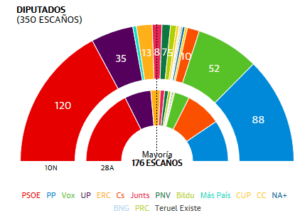 De aquí se extraen dos conclusiones: la primera de ellas, es que el espectro político se radicaliza, principalmente en Barcelona, País Vasco y Galicia. La segunda de ellas, es el surgimiento de partidos como Teruel Existe, representantes de la España rural y siempre olvidada, que en pocas semanas y a través de una plataforma