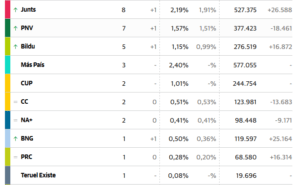 - Junts per Cataluña, PNV, Bildu y Bloque Nacionalista Galego suman un escaño.