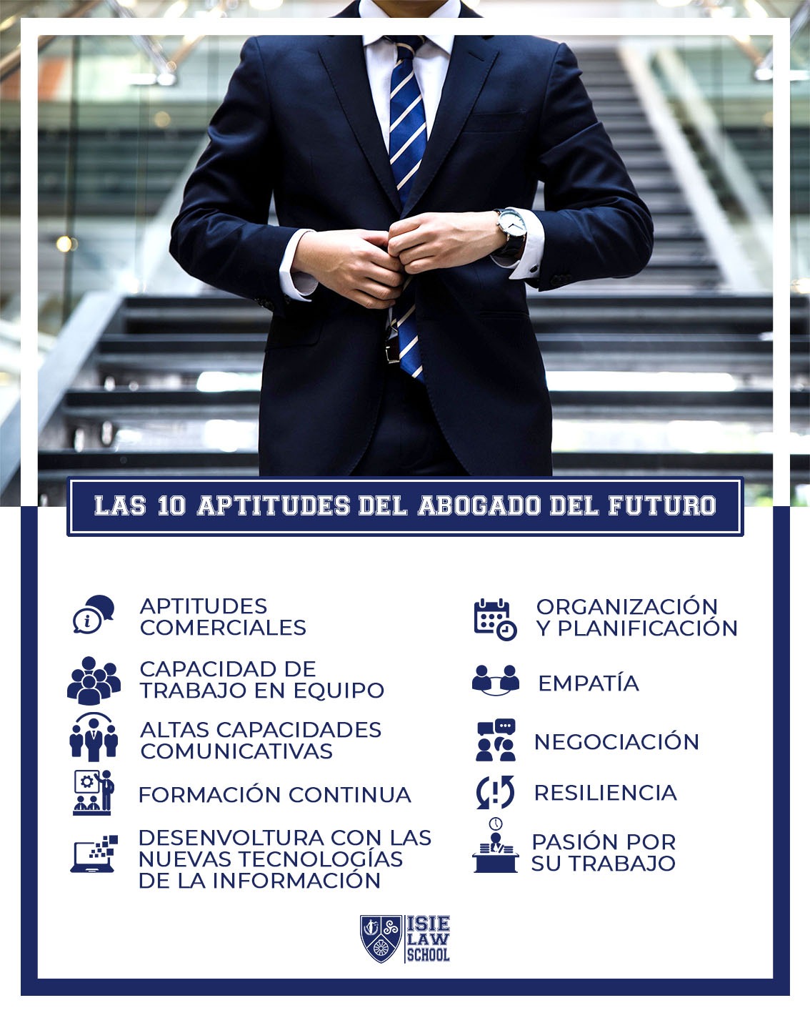- Aptitudes comerciales. Como hace unos días compartimos en nuestro perfil de Instagram, un buen abogado tiene que saber convencer a su audiencia para que la resolución sea favorable a su petición. ¿Cómo puedes conseguirlo? Conociendo no solo la ley, sino también todos los recovecos que ella misma esconde para encontrar los argumentos que el tribunal tiene que comprar.
